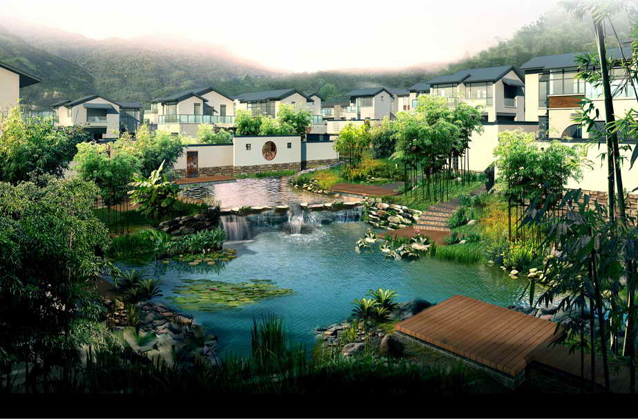 项目介绍:本案位于苏州吴中区东山镇。地块坐拥森林山脉,形成依山而居的区位优势。 设计上深挖基地内在特质,充分建立与周边环境内在的联系;最大限度利用土地景观和植被资源;最大限度的保护用地的水体资源,并形成水网构成主次水系空间;塑造人与自然不断切近的空间上的灰度变化;融入大范围的空间环境等。“采菊东篱下,悠然见南山”远离尘嚣的田园风情。隐逸山林,“天为被,地当床”坦然的山野之趣。隐逸非逃避现实,而是一种寻求内心平和、从容、宁静致远的禅者般境界。与现今儒商持重、稳健、自信与从容的心态相一致。通过建筑空间的塑造,形成环境与人心灵上的互动。