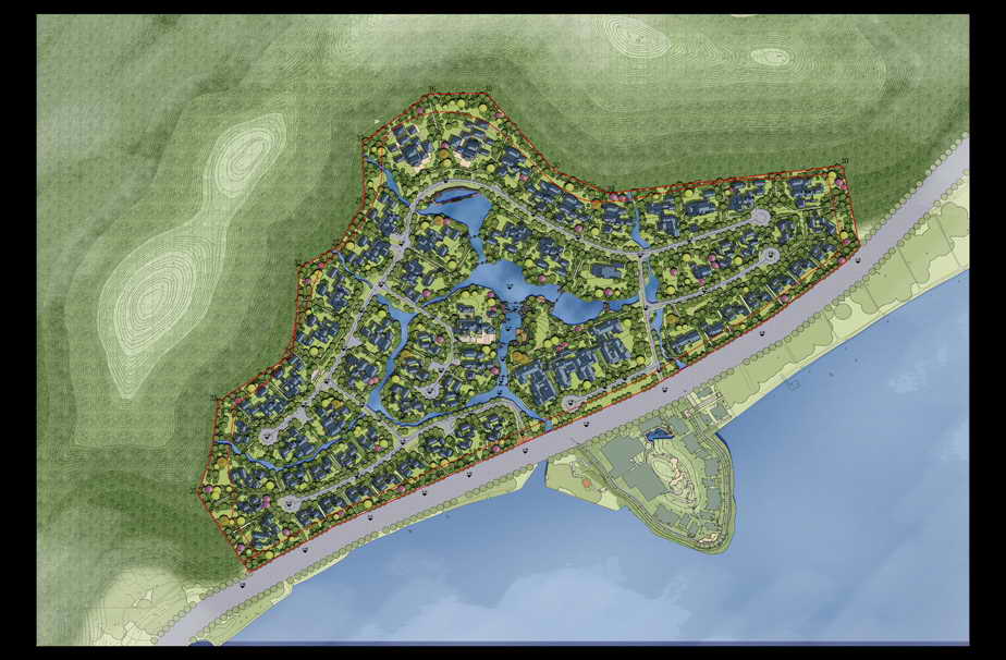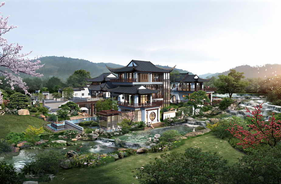 项目介绍:本案位于苏州太湖度假区光福镇邓尉村东南向的一山坳中,南邻太湖,北面以玄墓山为屏障。借取苏州园林传统空间设计手法结合现代设计理念,融合传统与现代手法,形成别具一格的设计理念。 建筑与水系形成有机的交互,建筑肌理呈锯齿状,形成跃向水面的动势。建筑是活跃有生命力的主体,远眺则太湖浩渺,近看则东西两崦回环,湖光岚影,