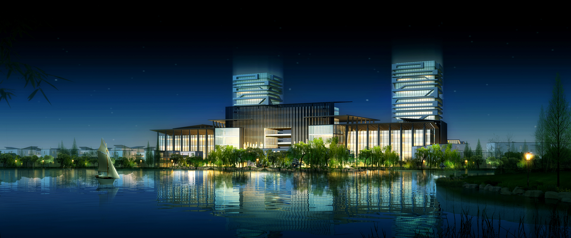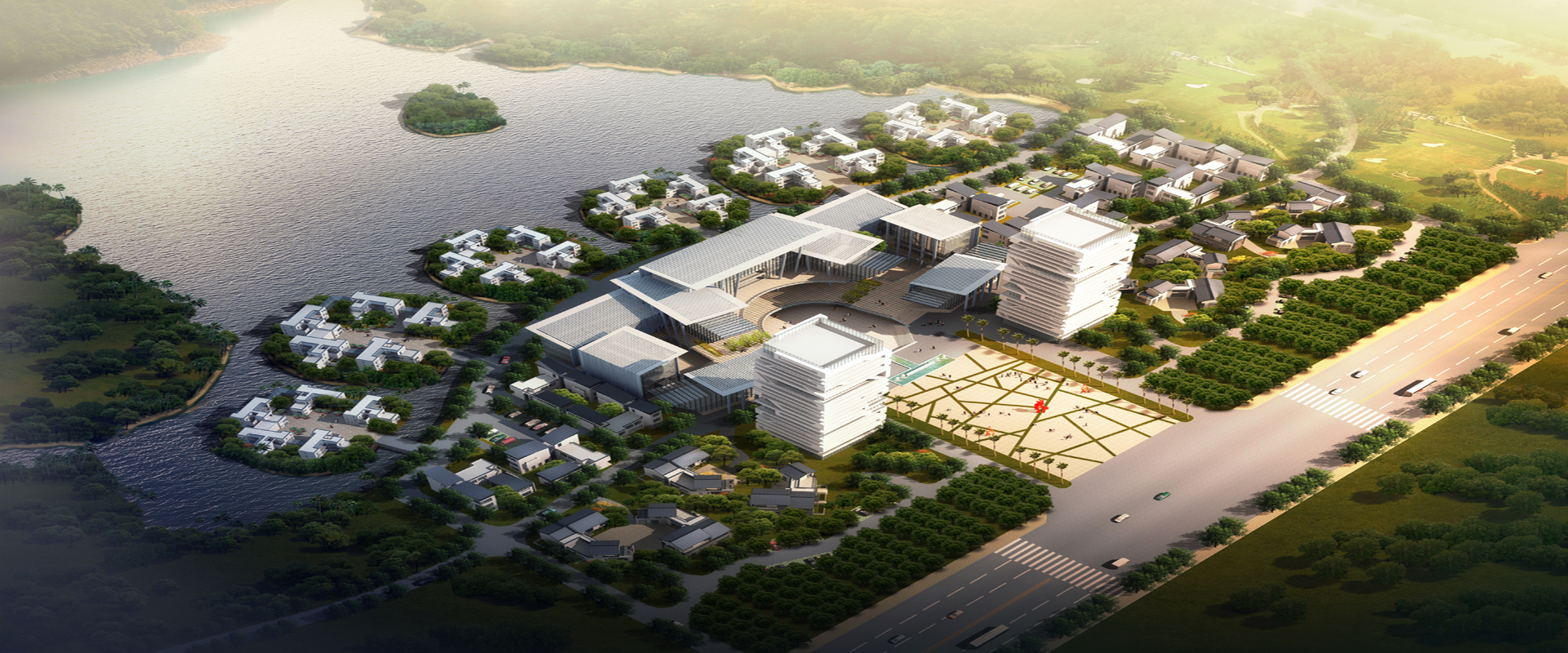 项目介绍:项目位于马鞍山市东湖公园东侧、江东大道西侧。建筑设计为低密度具有强烈地域性风格,配以大片绿地和水面,形成一个生态型花园式艺术中心,并与拟建的东湖公园相融合。设计理念上创意先行、艺术先锋、文化延展、低碳环保,与东湖边已建成的明清园、古床博物馆一同打造整个马鞍山文化产业的高地。