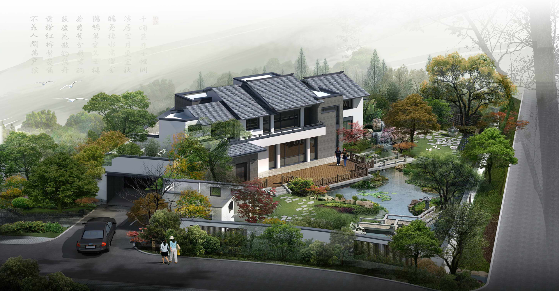 项目介绍:本案立足于人性化设计,注重满足舒适、安全、方便等方面的要求,提出别墅单体“最大占地率”的概念,追求人与自然不断切近的空间上的灰度变化,在建筑造型上强调文脉与现代特征的结合,在经典而充满生活气息的水乡生活样式中融入现代的技术文明,同时与欧风追求繁琐划清界限,营造清新、淡雅的现代江南水乡新形象。