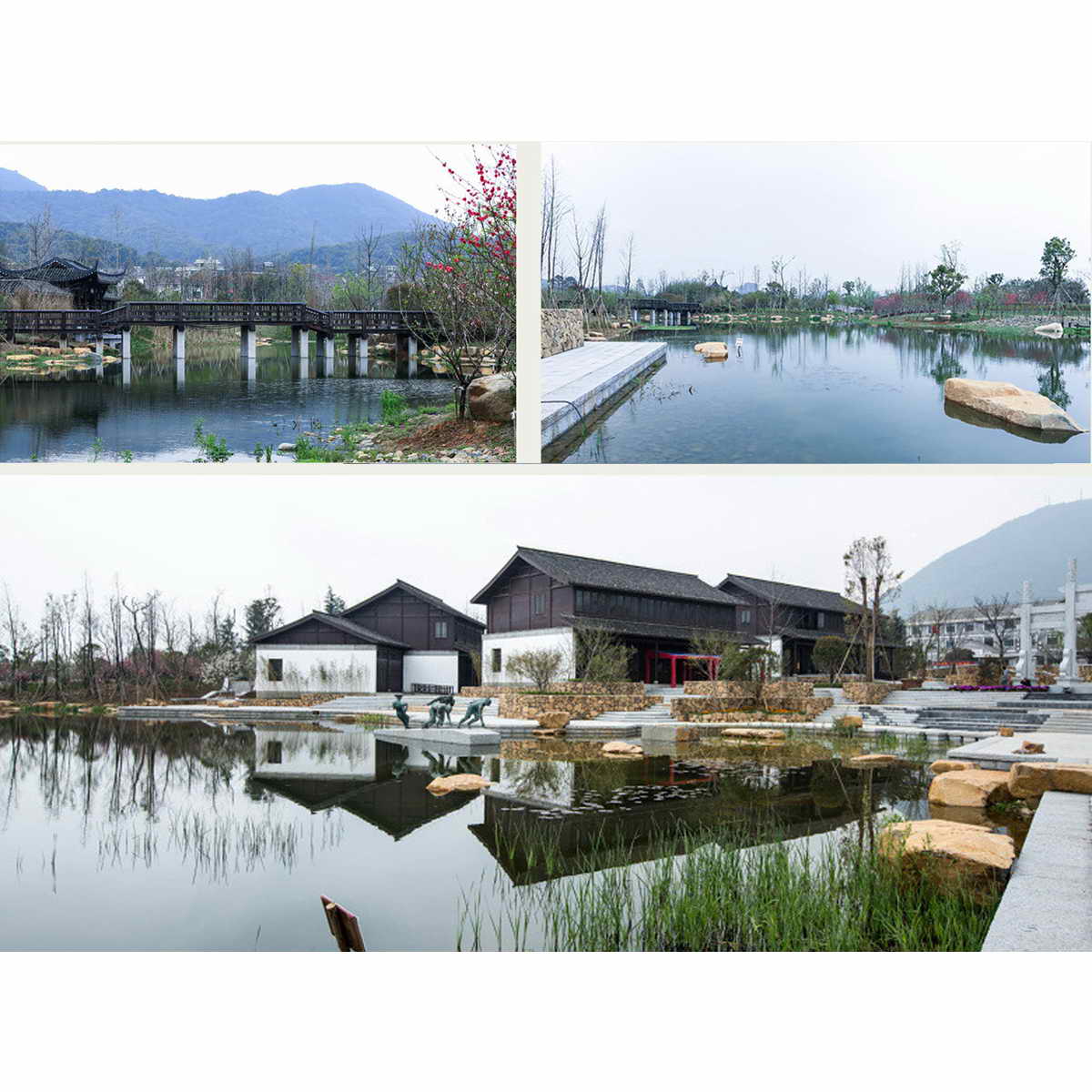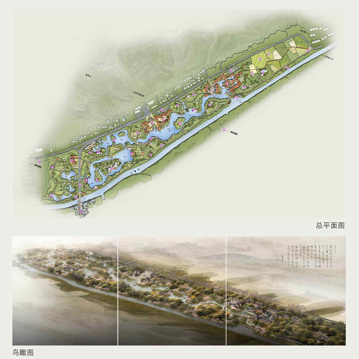 项目介绍:皋亭山是一座历史悠久的名山。本次主题用地为皋亭山南麓,上塘运河以北的507亩河塘。 规划结合皋亭山景区的旅游开发,把本案打造成杭州城市北部的旅游产业发展战略点——一个“不得不去”的旅游地;通过公园的建设,使皋亭村成为杭州城市近郊“绿色”新农村建设的示范基地——真实可触的田园美景;设计注重休闲和生态特色,使公园成为城北丁桥居住组团的生态休闲辐射中心——可以依靠的甜蜜家园。 本次规划结构:一带两翼三片。 一带是一条延续的景观带,由主城区沿上塘河一直通到临平附城; 两翼是左翼皋亭山体和右翼的上塘运河水脉; 三片是由南道北一次排开的三片主题景区。 桃源水乡:强调水上桃源的特别感受,突出一个“知识桃源”的命题,通过博物馆、珍桃院、桃林别业等节点来普及与提炼桃的知识,寓教于乐。 古埠村韵:强调一个郊野桃林古村落的感觉,并与现实中的皋城村连为一体,同时把主入口以及必要的休闲功能、主题活动广场、桃艺商街、开阔水面的水上活动区、正片成林的园林景观带融为一体。把文天祥正气坛、柳翠亭等文化纪念小品点缀其间,突出“文化桃园”的标题。 田园养生:取意传统的南宋休闲养生文化,同时与现代的休闲运动产业资源结合,同时把国元体验、户外露营融入其间,着力打造一个“体验桃园”。