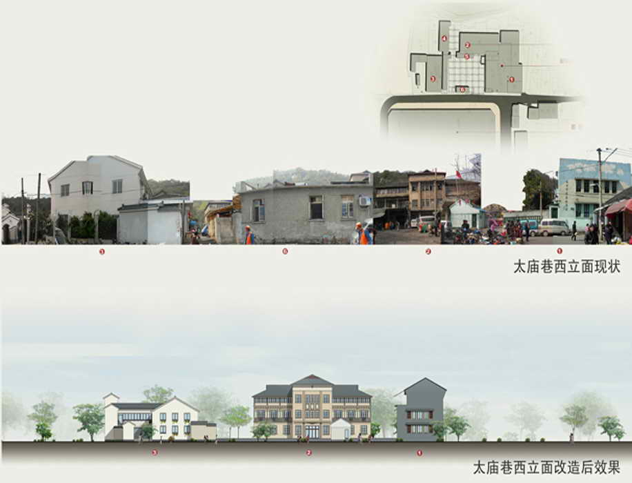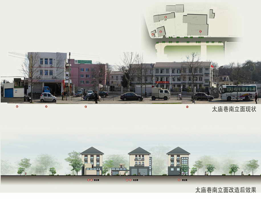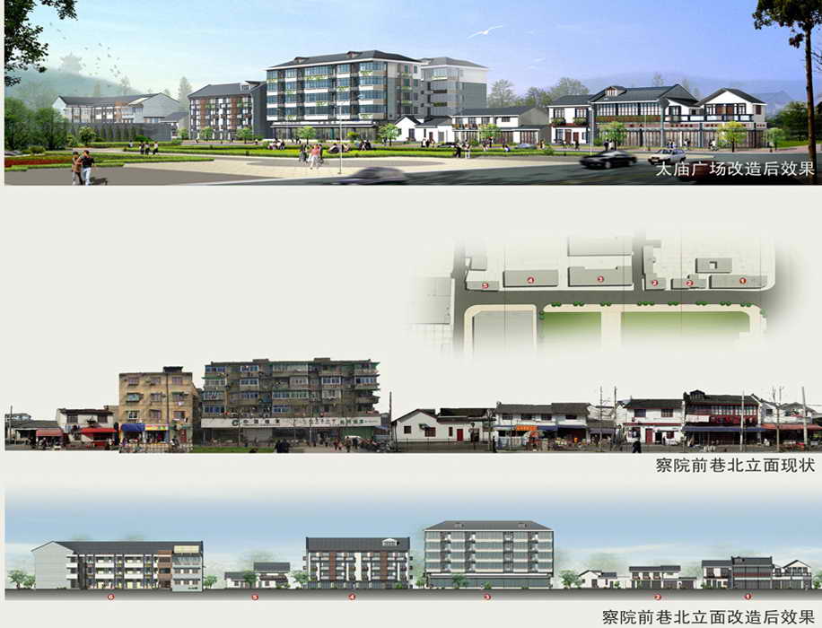 项目介绍:太庙巷和察院前巷由于农贸市场造成周边环境脏、乱、差,道路路面狭小,低洼积水、高低不平,绿化凌乱,花坛与围墙破损,并有裸土,停车和架空电线杆凌乱,且影响交通顺畅,缺少照明设施和街道家具小品,更缺少人性化空间。 该区块,建筑类型多,年代差距大,建筑质量参差不齐。建筑陈旧,粉刷破损,店面店招等问题突出,须予以整治。 改造设计遵循三个原则。统一性:统一空调挡板、店面店招、统一建筑色彩风格;协调性:协调停车、步行、休闲设施、绿化小品之间的空间关系;传承性:进一步挖掘,并传承太庙特殊的历史文化。将太庙巷打造为一条以老杭城的古韵古香为依衬的精致街巷,达到改善旧城风貌、重塑开放空间、再现文化气息的目的。