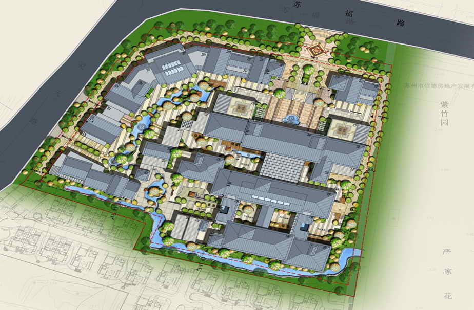 项目介绍:本案位于木渎老镇南部区域,紧邻灵岩山风景区及山塘街等历史文化区域。通过对古镇既有城市肌理和脉络的梳理和解读,以巷弄行驶来组织各单体空间,结合现代的生活理念,将苏州建筑的精髓进行继承,以巷弄、建筑群落等形式将城市的肌理淋漓表现。继承传统文化中的“天人合一”的建筑规划理念,尽可能地解决和完善了人们观赏、娱乐、休闲、集会、健康、工作、交流等之间的关系,从而达到“人与自然和谐统一”这一永恒主题,创造一个建筑与自然和谐共生的酒店建筑,并积极合理地采用新材料、新技术,以达到先进合理、经济安全、洁净卫生的要求。