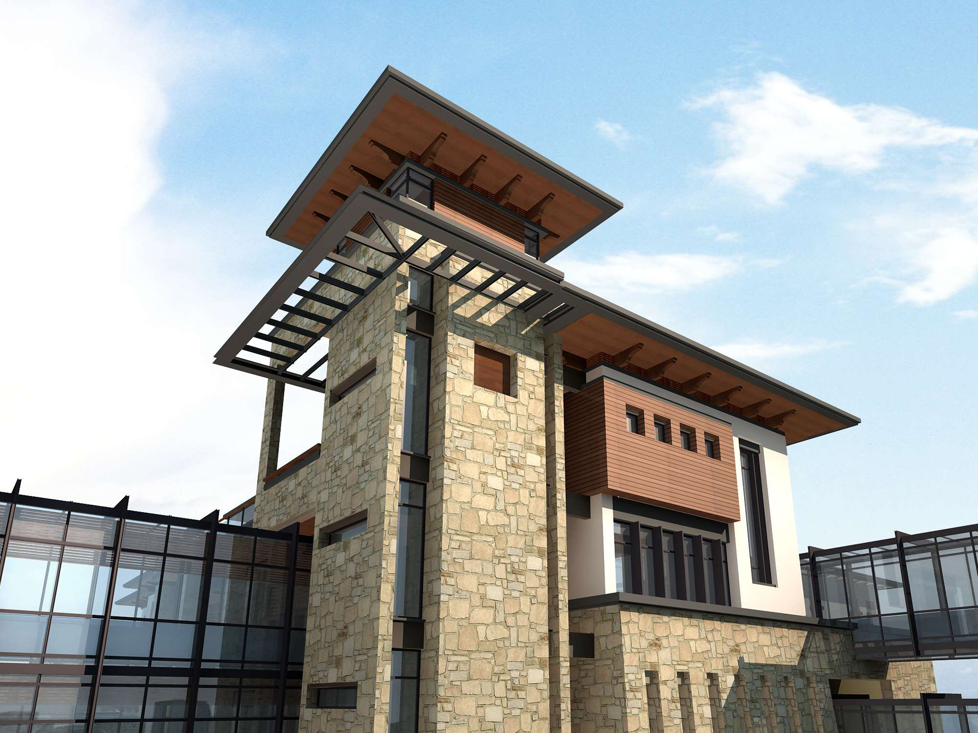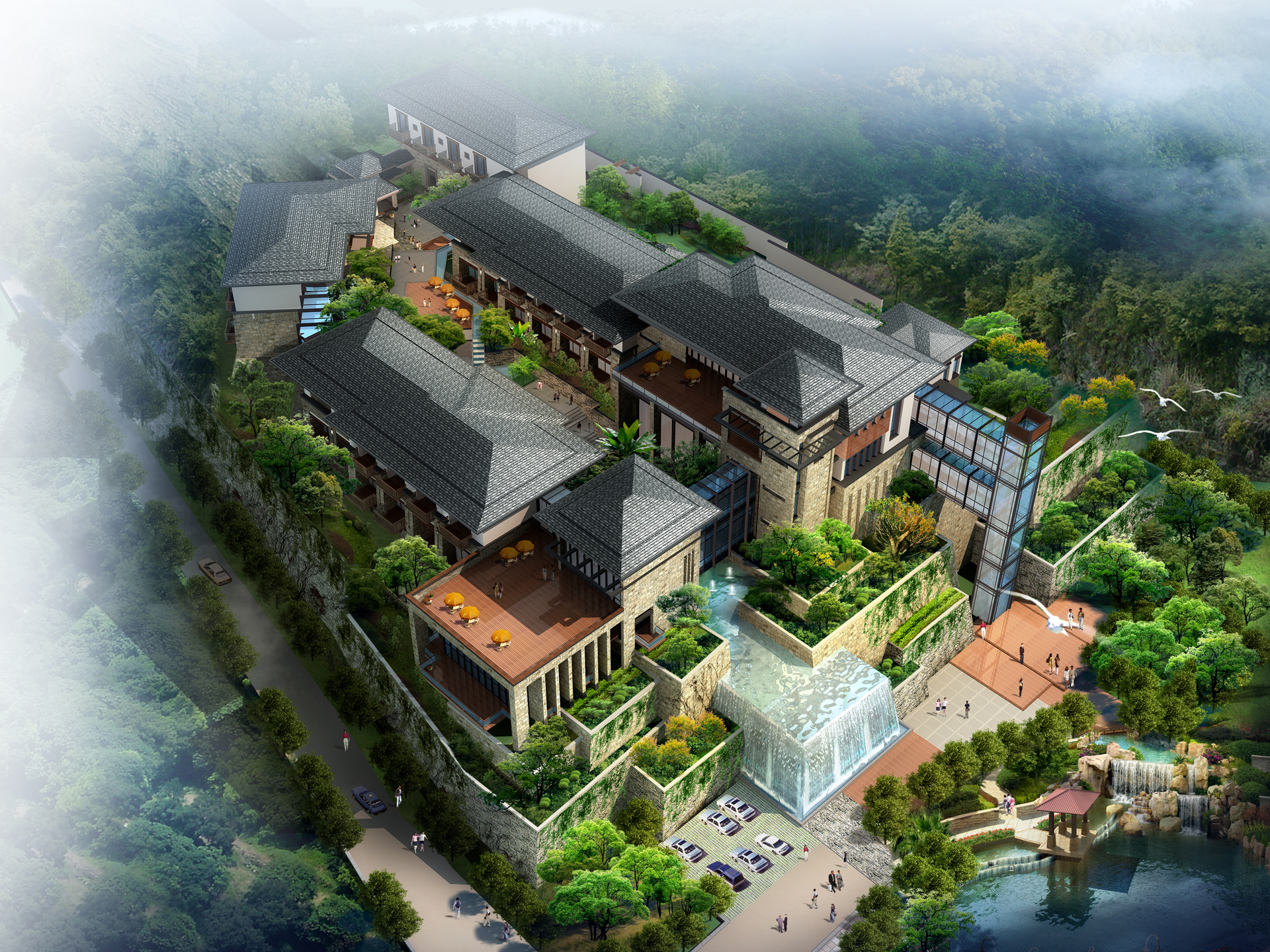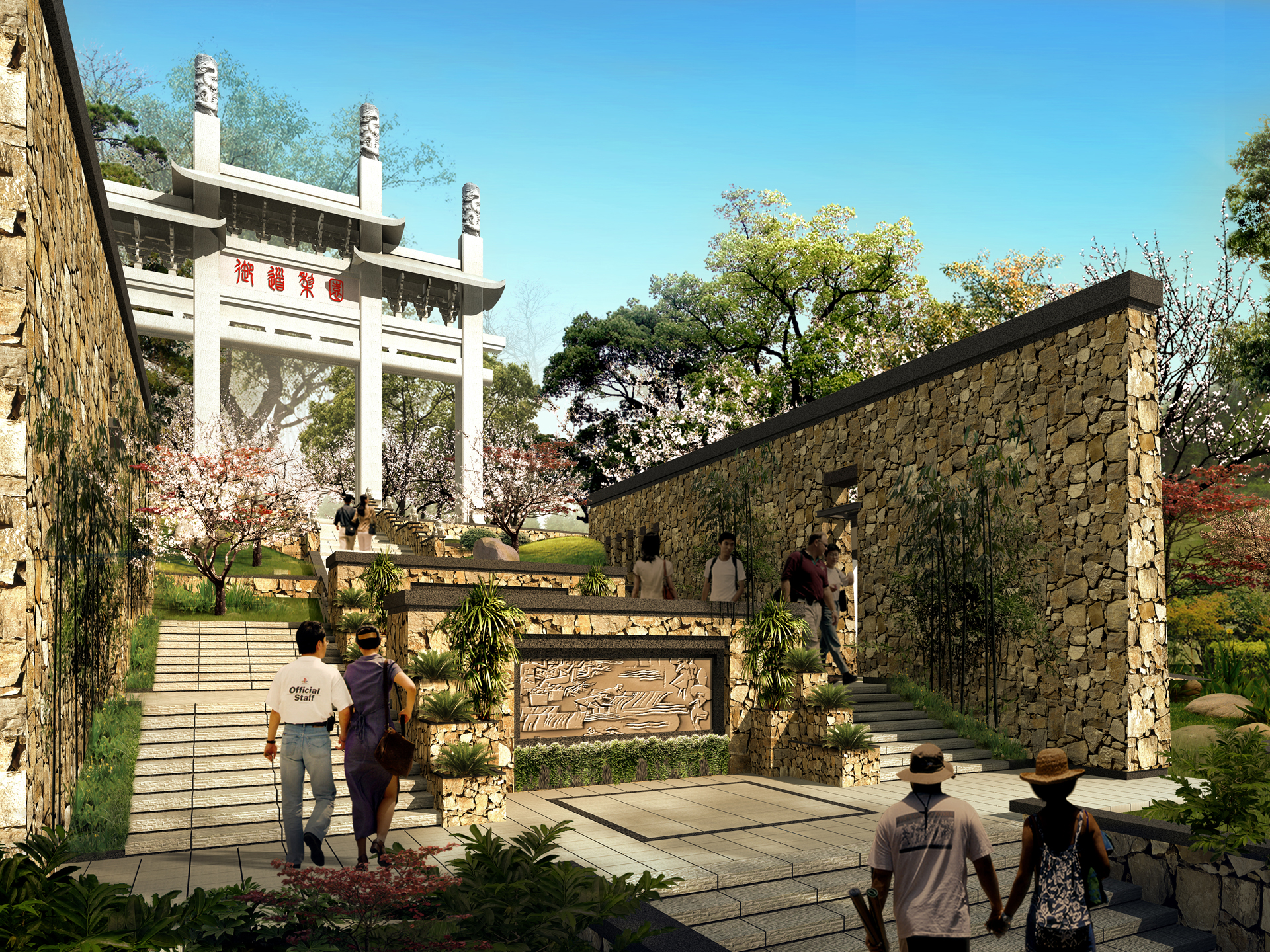项目介绍:本案位于泰山脚下,在入口设计上营造“一点、一面、双轴”的空间格局,打造皇家礼仪轴线,通过梳理山体,化坎为坡,从地面到入口牌楼形成五重台地,向下回望,五重台地上层层梨花,如现云起云落之象。整个项目业态丰富,包含别墅、酒店、商业街、游乐园和养生会所。