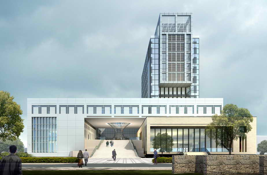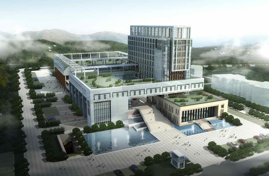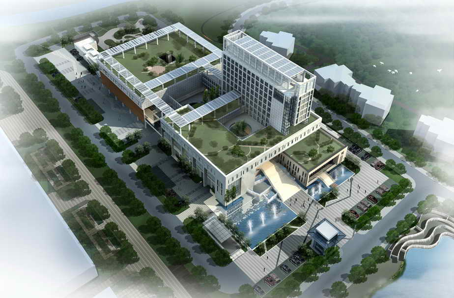 项目介绍:本案位于昆山高新区的低碳产业主题园内,恒辉新能源公司的北侧,毗邻未来主题公园核心景区,景观条件优越。基地东西长230米,南北宽120米,地势平整。将建成新能源产品、技术检测的权威机构和新能源标准的展示发布平台。 项目定位为国家新能源技术检测平台,低碳行业标准的制定与评价机构。本案建筑设计庄重、典雅,以体现其“标准”制定与评价机构的特征;同时必须体现最新国内外绿色建筑设计理念,不仅外观上一目了然、特色鲜明,使其成为地标性建筑,有别于昆山市、华东地区乃至全国同类型建筑,同时适应控制造价,使用节能低碳技术,建筑色彩与周边整体建筑环境协调。 景观方面,充分利用公园内的生态自然景观,将其渗透进建筑内部,场地中景观设计考虑竖向景观与水平景观设计,竖向上屋顶花园的设置为办公参观人员提供丰富的休闲场所,远眺主题公园。水平景观设计注重与功能的完美统一,广场绿化的设置既解决交通集散问题,又强调与整个主题公园大环境的融合,成为其景观的重要组成部分。