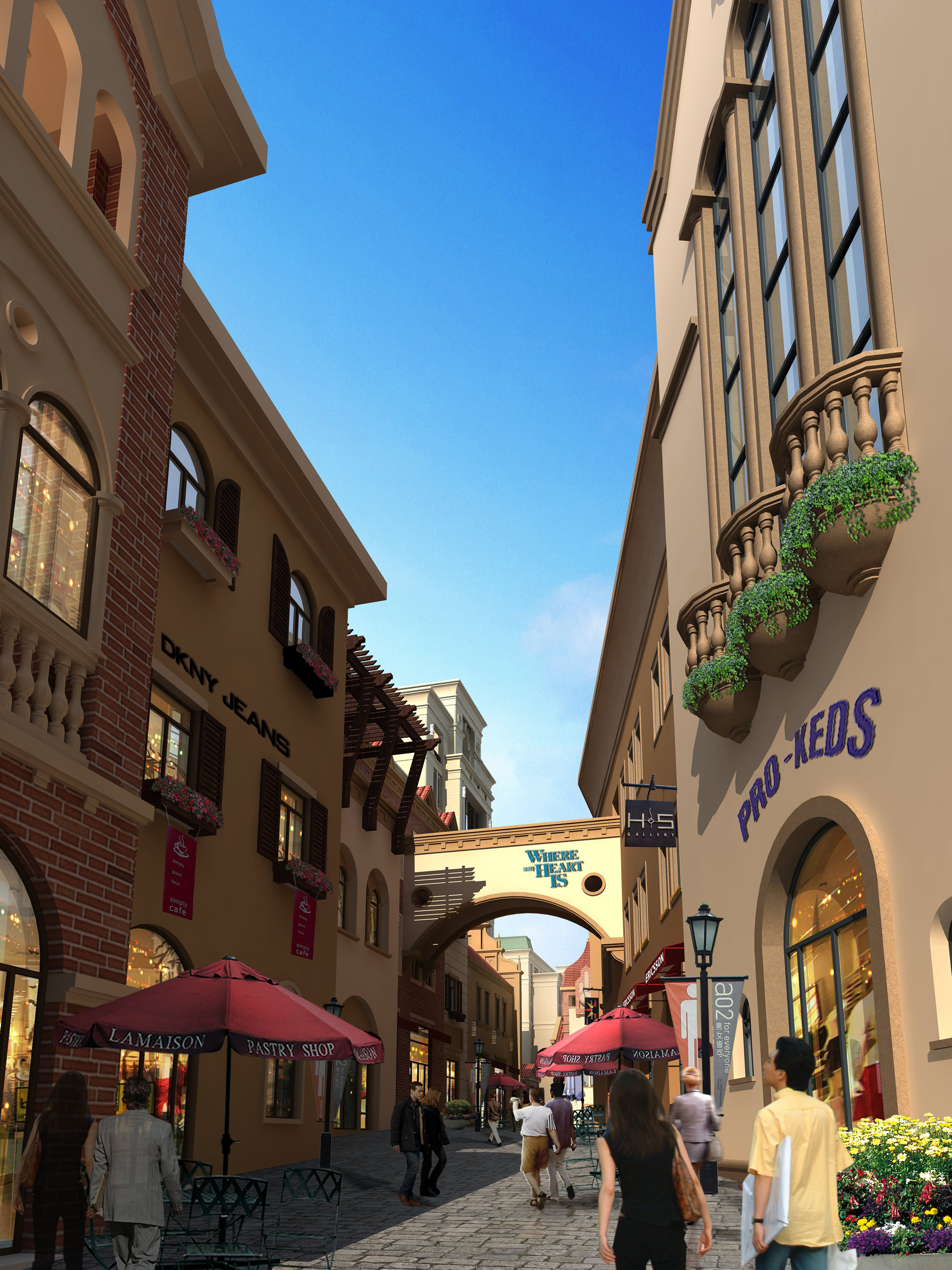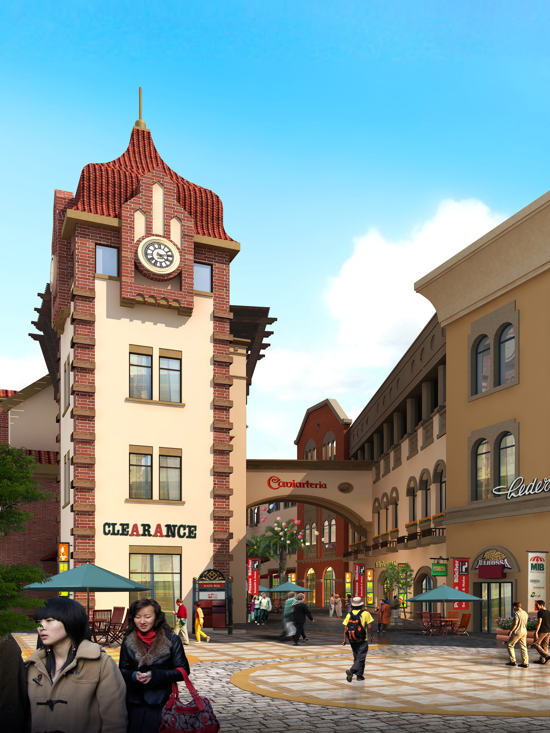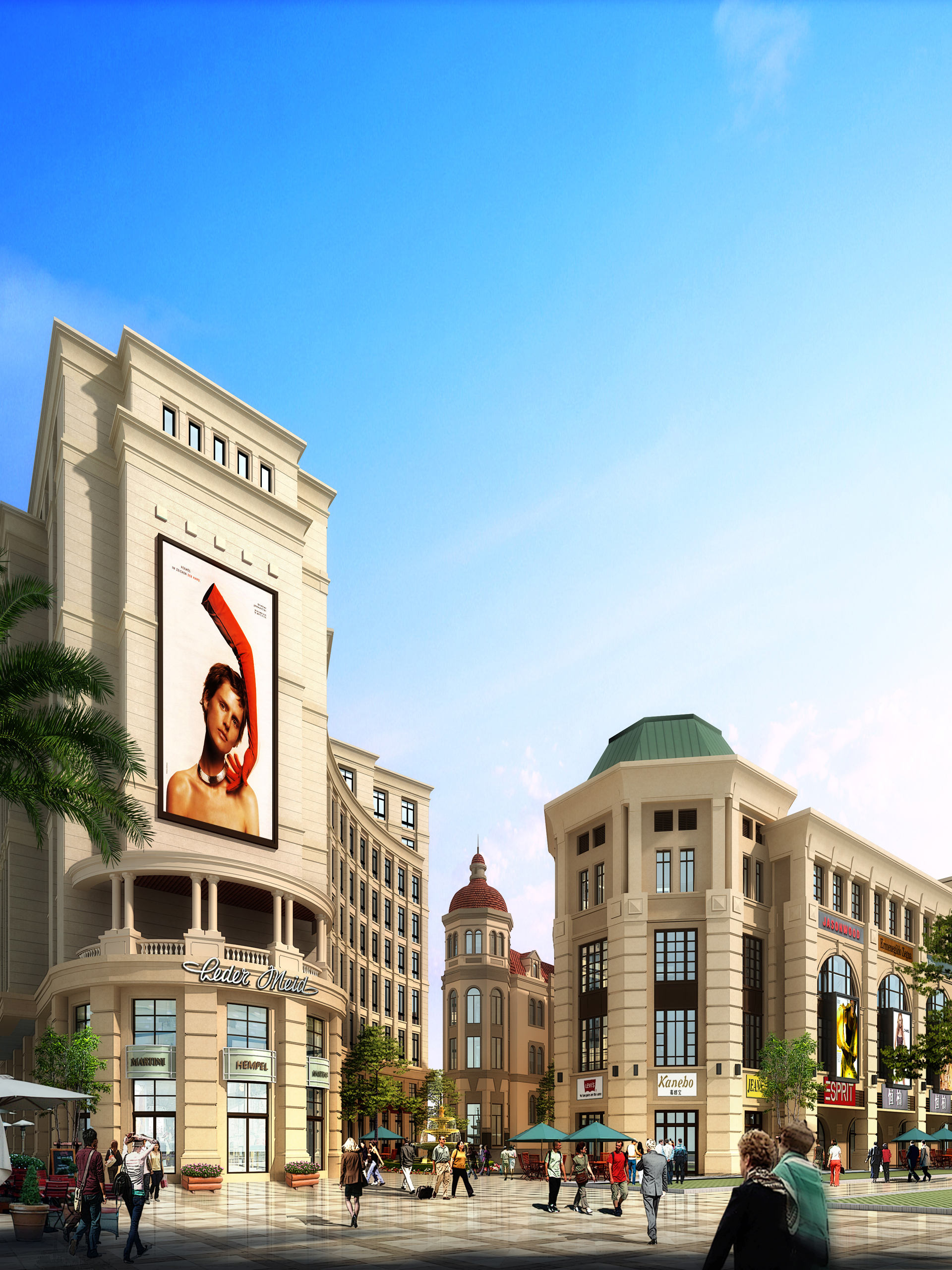 项目介绍:本案由度假酒店、综合商务楼、商务别墅、香榭丽小街和罗迪欧小街(商业步行街)组成。项目利用山地地形创造多首层的商业空间,在建筑造型上充分结合青岛历史积淀,将不同时期具有浓厚德式风情的建筑影像浓缩于本项目的不同位置节点,并配以高低错落,富有节奏韵律的多重景观层次。井然有序地结合多种设计元素,形成人与人之间及自然之间的对话场所以及富有人性化的情感空间。同时设计了与商业街整体风格相呼应的屋顶花园,并结合中国传统园林的造园艺术,取其精粹,融入欧式风格之中,在仅有的空间中,运用造景手法,扩展空间。通过设计使资源利用最大化,形成了青岛独一无二的商业热点区域。