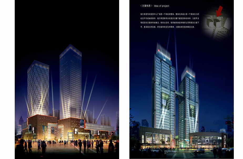 项目介绍:本项目紧邻菏泽市政府,地块处于核心区,功能复杂,其中包含商业、文化、居住等众多功能。设计从城市整体角度出发,划分功能分区,组织交通流线,完善商业系统,最大限度地提升区域内的土地价值和商业价值,使商业开发与城市设计完美统一。这些特点使得该项目已不能仅仅作为一个大型商业综合体或大型社区来开发建设,它承载的众多功能可以把它看成一个“城”——一个开放的、现代的、有机的“国贸中心”。未来的国贸中心将提升这一区域的城市形象,增强城市活力。